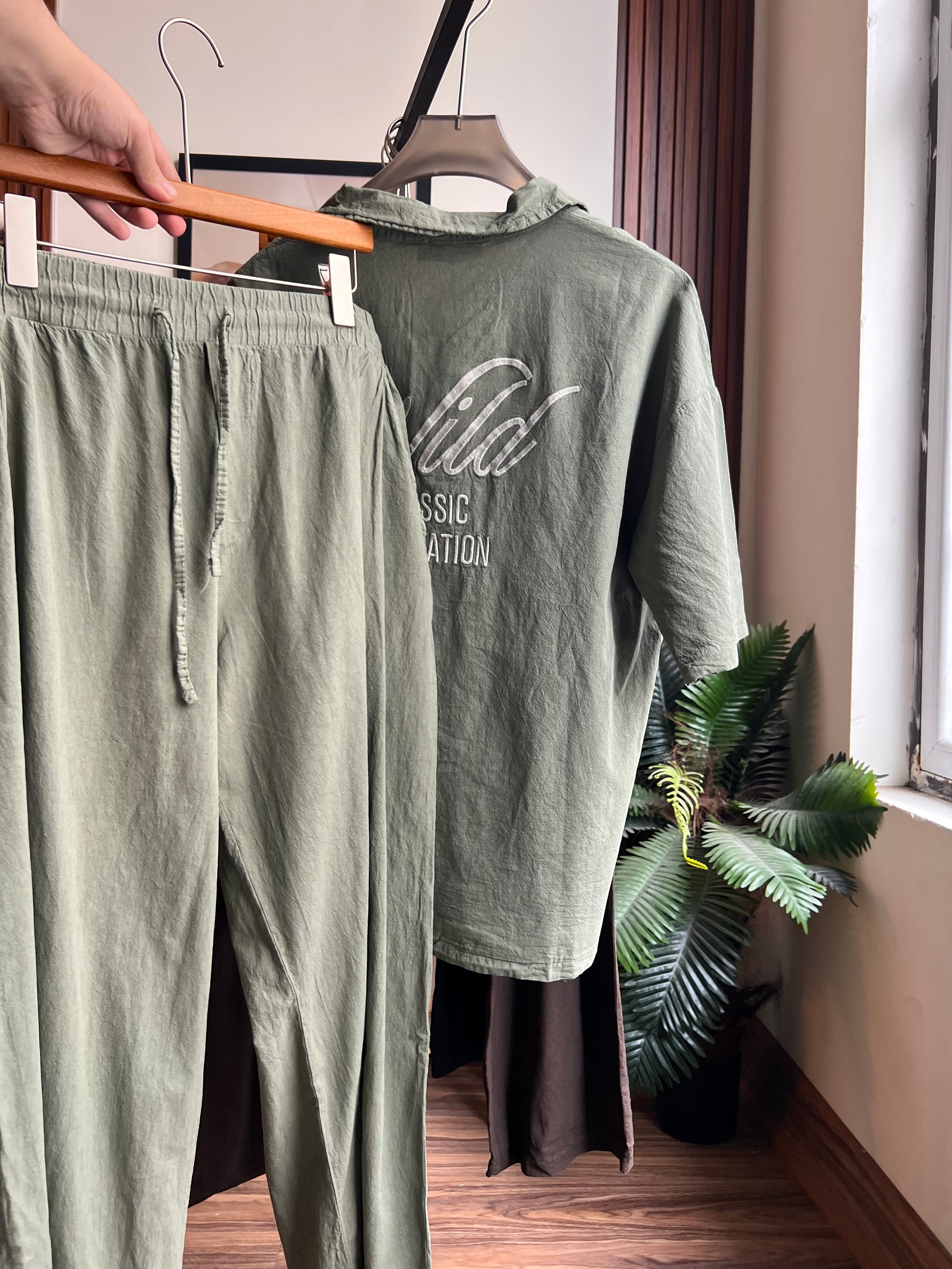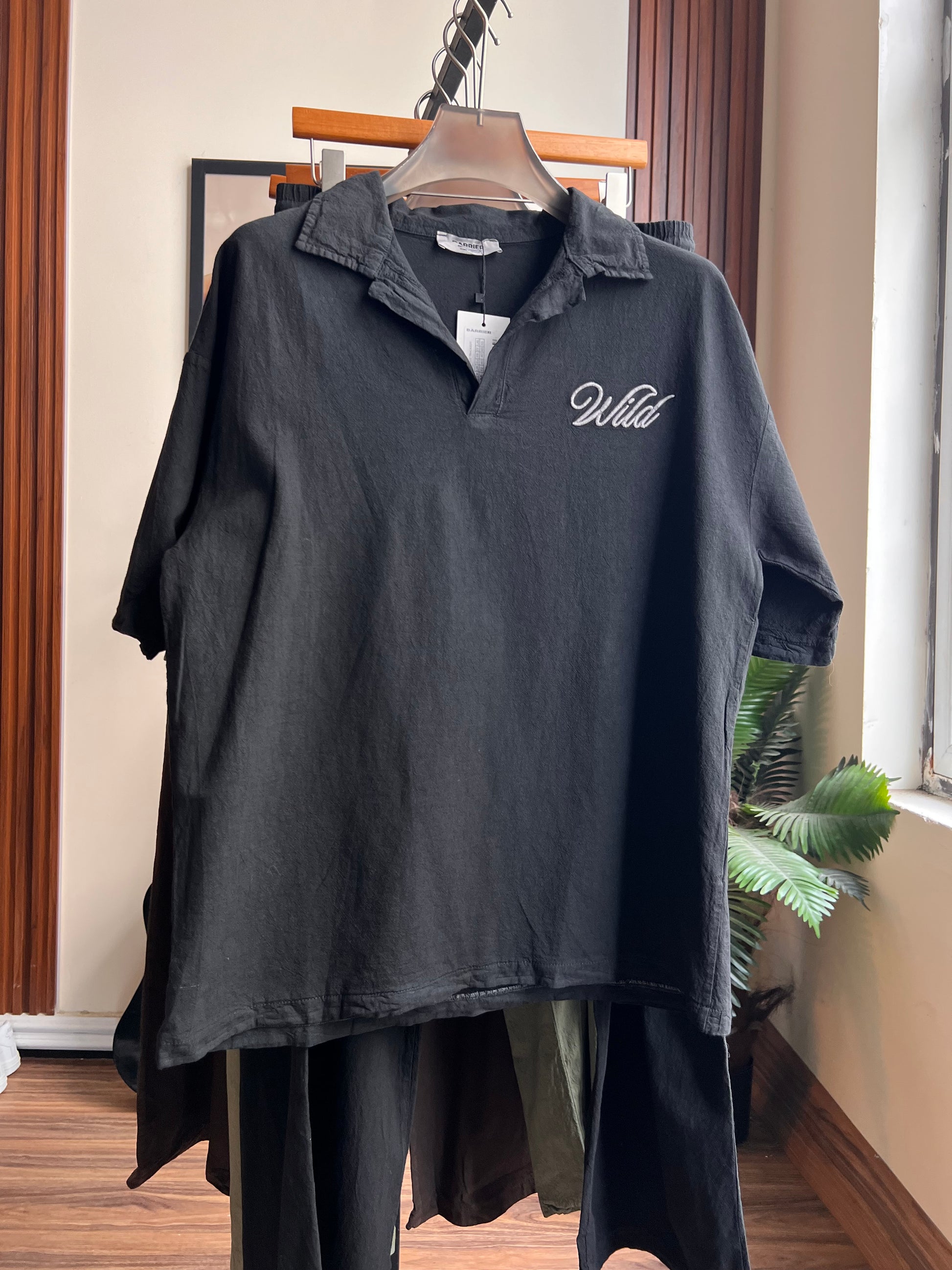 لوغو تطريز بالصدر والظهر فنشنغ عظيم | خامة قطن 100% خشن ينطي مظهر فخم ويضيف تفاصيل للقطعة | بجامة سوبر باكي طولها 105cm | حجل 28cm تقريبا